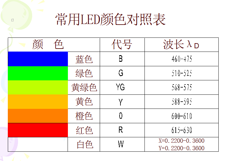 LED背光源燈珠顏色對(duì)照?qǐng)D: